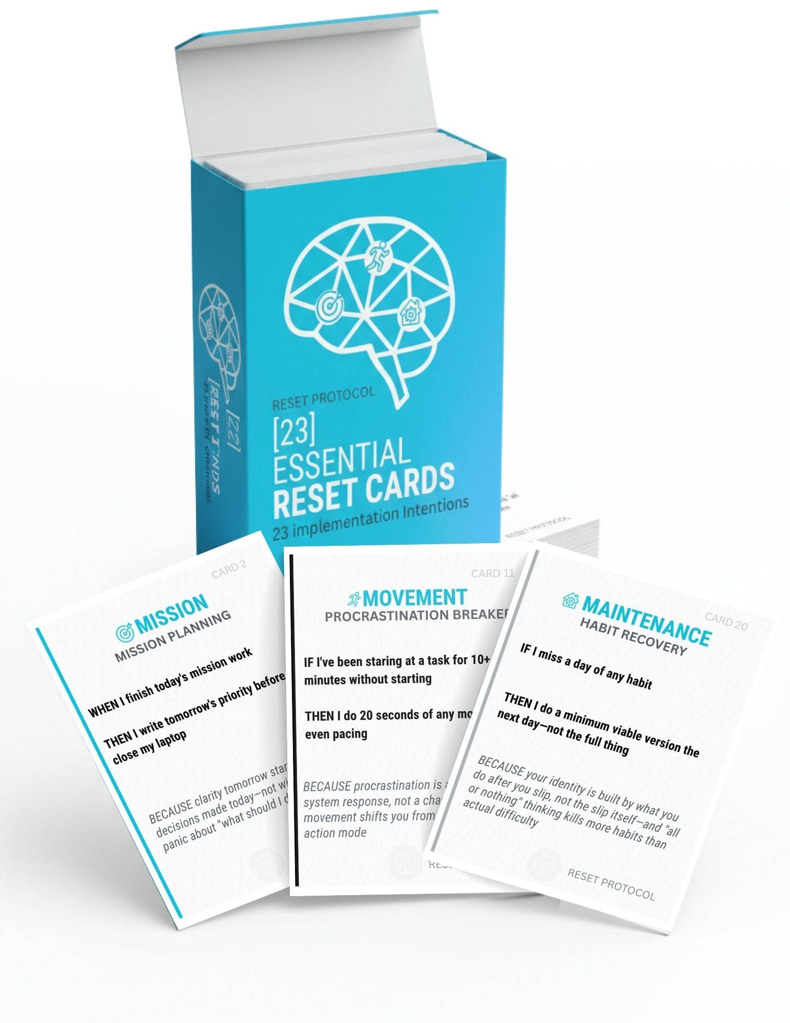 These 23 cards give you pre-made If/When-Then plans that remove friction from your 3M System—making the right actions easier to start.
